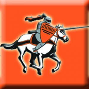 Comment: Since you couldn’t exactly fit photos of Misters Smits, Page and Cagney on a football helmet the Jimmies went with this much more eye-catching logo for their sports programs.