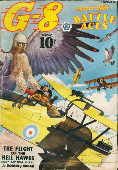 Flight of the Hell Hawks REAL50. THE FLIGHT OF THE HELL HAWKS (November 1937) – In their 50th issue G-8 and his Battle Aces go up against a mad scientist named Dr Schmidt. Schmidt is invading the scientific territory of G-8’s Austrian foe Dr Mollfuss by creating a monstrous man/ animal hybrid. That’s why I wish that Hogan would have just gone ahead and used Mollfuss instead of coming up with another villain with the same schtick.