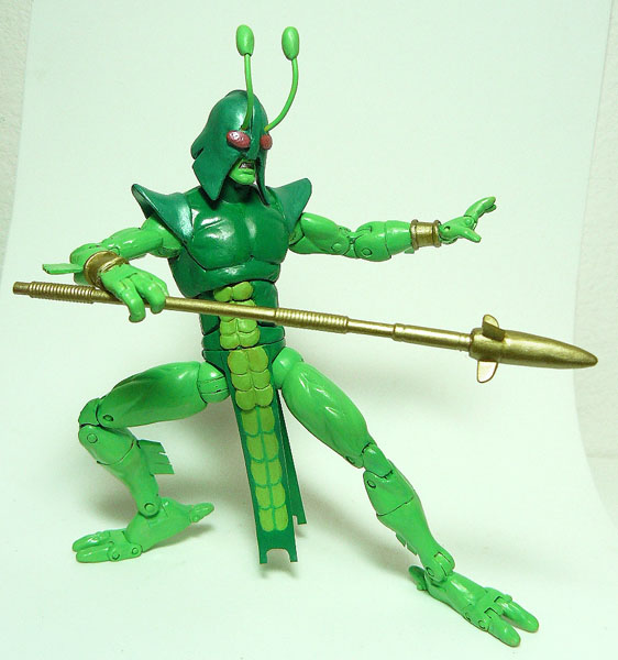 BugGALACTIC WARRIOR – This figure was the only Micronaut to transcend his origin as a toy-cum- Star Wars ripoff and truly shine on his own. In fact he shone so much he was the only figure to become better known by his comic book series name of Bug rather than by his toy name. “Bug” was a swashbuckling thief who was a member of the Insectivorid race. His rocket-lance could be used as a traditional combat lance, as a martial arts kendo staff in close quarters battles, could fly and could shoot energy beams from the tip.