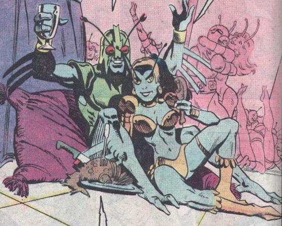 Bug partyingSometimes the Micronauts would emerge from the Microverse into our universe, but would conveniently be only about 6-8 inches tall, like their toy counterparts. They met Marvel characters like the Man-Thing, Ant-Man, the X-Men, Fantastic Four and even battled a Hydra/ Baron Karza alliance alongside Nick Fury and the Agents of S.H.I.E.L.D. It HAS to have eroded Hydra’s self-esteem to lose to a bunch of toy-sized aliens.