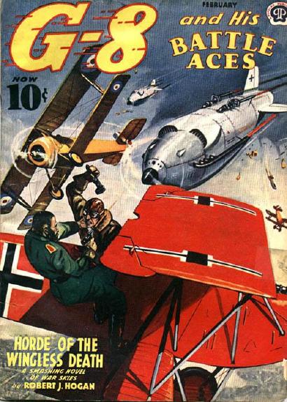 G-8 was created by Robert J Hogan in 1933 when World War One was still being called simply the World War or the Great War. Over the next eleven years Hogan wrote 110 stories featuring the adventures of G-8, the street-smart pug Nippy Weston and the brawny giant Bull Martin, his two Battle Aces.