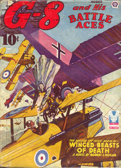 G-8 was created by Robert J Hogan in 1933 when World War One was still being called simply the World War or the Great War. Over the next eleven years Hogan wrote 110 stories featuring the adventures of G-8, the street-smart pug Nippy Weston and the brawny giant Bull Martin, his two Battle Aces.