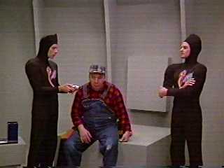 Our movie opens up with a UFO shooting a rather heavy Canadian farmer in an Elmer Fudd hat with a paralyzing ray, then abducting him. While in the aliens’ custody the farmer is confronted by one of his captors – a beautiful nude woman. The two have sex and return the farmer to his home, following which he tries to tell the authorities about his experience but they don’t believe him.