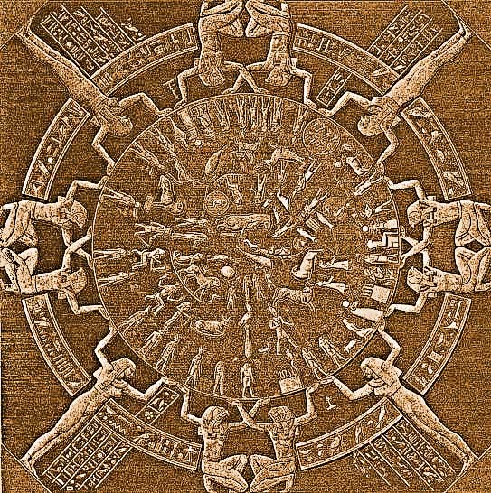Vague allusions are made to the Dendera Zodiac, a piece of artwork with applications in astronomy. That Zodiac, along with other artifacts from Dendera, were on display at the Louvre since around the 1820’s (I checked) so that is where I assume the author Isidore Ducasse saw them. I disagree with people who claim Ducasse must have visited Dendera in person.