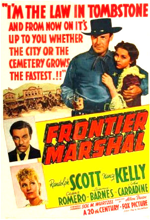 Movie: Frontier Marshal is notorious as the LEAST historically accurate depiction of the Gunfight at the O.K. Corral. Randolph Scott starred as Wyatt Earp with Cesar Romero as Doc Holliday. Nobody can pronounce Doc’s name right, plus he’s presented as a Medical Doctor instead of a dentist. Meanwhile Doc himself starts out the film drinking only milk. (?)