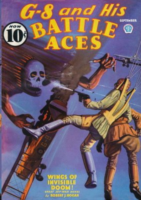 Wings of Invisible Doom 236. WINGS OF INVISIBLE DOOM (September 1936) – This is it! The story that kicked off what will be a big trend in future G-8 adventures: SUPERVILLAIN TEAM-UPS! Yes, various combinations of G-8’s Rogue’s Gallery of foes will join forces to try to accomplish what they couldn’t do individually, namely kill G-8 and his Battle Aces plus win the war for the Central Powers.