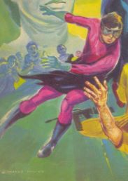 Powers: This hero was in peak human condition and excelled at armed and unarmed combat. He was more agile than an acrobat. He was wealthy in his civilian identity as a movie star and could obtain gadgets and equipment as needed. Supremo’s series ran for two years until its creator married. He had two young male sidekicks, Vijay and Anthony, as well as a trained falcon named Shaheen.