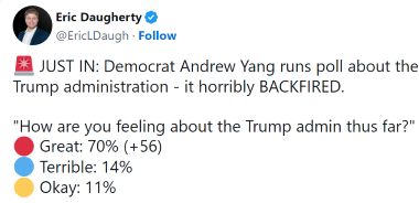 DEMOCRAT POLLSTER FINDS DEMOCRATS NOW DOWN TO 35% APPROVAL, WHILE TRUMP IS AT 57% APPROVAL.