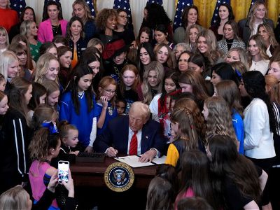 Below are some photos celebrating President Trump keeping men who can’t compete against other men out of women’s sports.