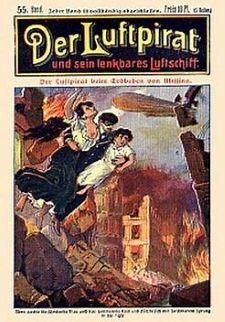 KAPITAN MORS DER LUFTPIRAT – From 1908 to 1911 the masked Captain Mors, a combination of Robin Hood, Captain Nemo and Robur, appeared in weekly adventures running 32-33 pages. The character’s creator is not known but over his 3-year run various writers were linked to this German series, which was basically a late Dime Novel but early Pulp Magazine.