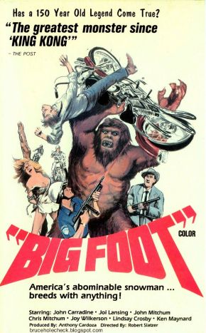 BIGFOOT (1970) – Bikers battle Sasquatch!This neglected landmark in Golden Turkey history unites nearly all the bad movie Mafia from the American Southwest and throws in Haji, Doodles Weaver and a few Mitchums for good measure. Its crowning choice in casting finds Balladeer’s Blog’s buddy John “He’s probably even in the Zapruder Film if you look hard enough” Carradine along for the ride.