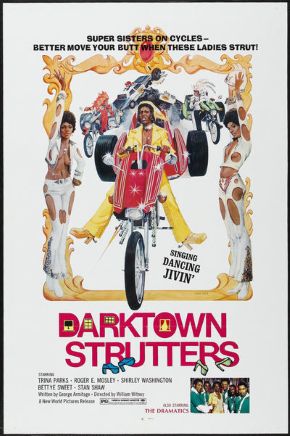 DARKTOWN STRUTTERS (1974) – Exploitation filmmakers figured if female bikers and black bikers are good for a quick buck, then bikers who are black AND female must be worth their weight in gold, baby! Syreena leads her three-wheeled biker gang into inner-city Los Angeles where they clash with racist cops and try to get to the bottom of a rash of disappearances plaguing black neighborhoods.