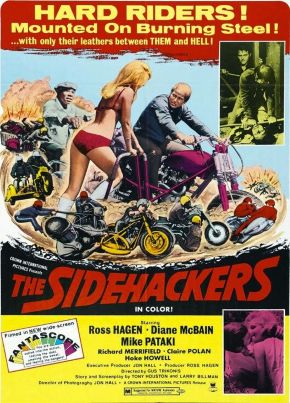 THE SIDEHACKERS (1969) – Ross Hagen was the poor man’s William “Big Bill” Smith when it came to biker films. In this flick Hagen portrays Vince Rommel (Seriously. Rommel.), a former carousing biker trying to go straight with a five day a week job. In other words, working “Five the Hard Way“, the movie’s alternate title. Rommel (LMFAO) runs a motorcycle repair shop with a friend and is looking to marry a Standard Movie Blonde while also competing in “Sidehack Racing”, a laughably pointless and very silly-looking attempt at a motocross “sport”.