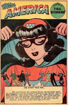 Epilogue: Back in Washington a few days later, Miss America recaps the adventure for U.S. intelligence, who claim they will keep the Solar Weapon plans to make sure nobody ever uses them. Uh. Yeah.
