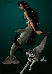 1. SEDNA – The sea goddess and the most celebrated deity in the Inuit pantheon. Even mythology books that cover no other figures from Inuit myths will usually have an entry on her. She was the daughter of the god and goddess Anguta and Isarrataitsoq and, like countless female figures in Inuit myths, she refused all prospective husbands. Sedna instead had sexual relations with dogs and the “freakish” offspring of these unions were said to be white people and Native American tribes that the Inuit were often at war with.