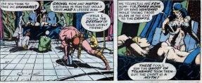 Topaz tries to stab Conan, who angrily asks what is going on. With his final words, Topaz tells our hero that Prince Olmec ordered him and Yanath to kill him so that Olmec may have Valeria for himself. Conan races off to rejoin her on the other side of the city.