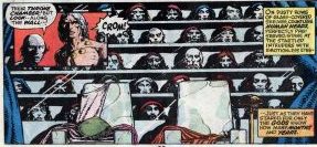 Inspecting the Xotalanca throne room, Conan and his comrades see their now-extinct people’s version of the Tecuhltli’s Black Pillar of Red Nails. It is floor to ceiling shelves filled with the decapitated but preserved heads of every Tecuhltli they killed over the decades.