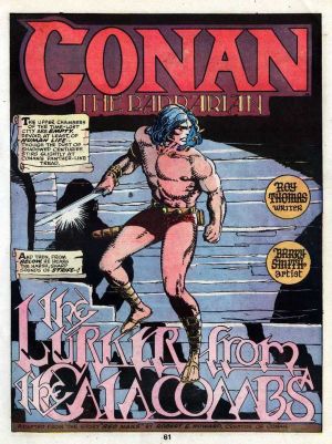 II. THE LURKER FROM THE CATACOMBS – Time passes and we join Conan as he is at last returning from his vain attempt to find loot that could be carried off by him and Valeria. Suddenly, he hears the clashing of swords and follows the sounds to their source.