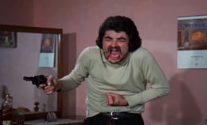Zeynep keeps firing and the actor keeps dragging out his character’s death throes while we viewers keep laughing our asses off. The international edit of Karate Girl keeps the entire embarrassing scene intact, but copies intended for Turkish consumption have cut the scene down to a much less funny amount of time.