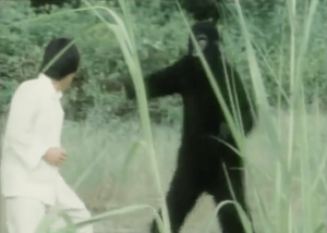 Bruce assists the master against the man’s thugs as well as, for no reason at all, some Asians dressed up as Native Americans who fight with spears. Hey, why not? Even the gorilla that attacks next makes sense compared to them. Anyway, the good guys win. The end.