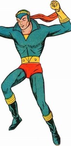 E. Origin of the Thin Man – This was the only 1940s appearance of this superhero. Bruce Dickson was granted superpowers by the hidden Himalayan civilization of Kalahia. Those powers let him render his body flat and rubberoid. He can slide under doors or in between cracks plus stretch a bit like Plastic Man. Even in his thin state, this hero retained full bodily strength.