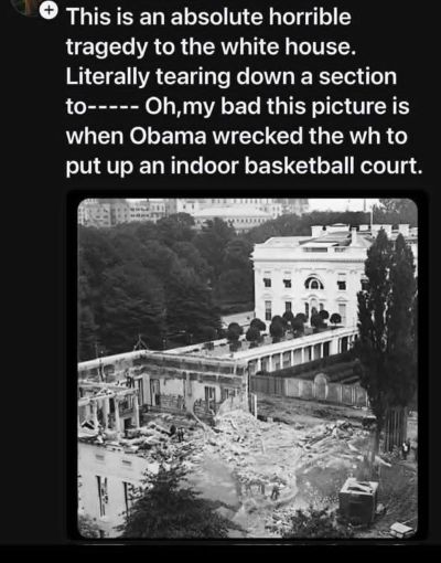 Independent Voter Site Balladeer’s Blog does another current events roundup from an America where Democrats are so low they are now pretending renovations to the White House are “destruction” when President Trump does them. A historical timeline of White House renovations HERE.
