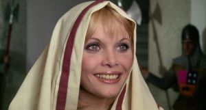 Karen (Haydee Politoff), the only virgin among the ladies, is spared by Dracula, who falls in love with her. In the end, Drac’s love for Karen prevents him from turning her into one of the undead to share eternity with him. The conscience-stricken count slaughters his four new vampire slaves, then plunges a wooden stake into his own heart rather than harm his beloved Karen.