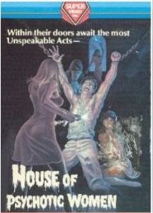 HOUSE OF PSYCHOTIC WOMEN (1974) – Paul Naschy tries his hand at a slasher movie. A drifter named Gilles (Naschy, of course) is hired as a laborer by three strange sisters led by Claude (Diana Lorys), half of whose face and body is deformed.