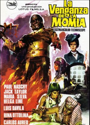THE MUMMY’S REVENGE (1975) – The Spanish title for this flick is La venganza de la momia. At last we get to see our man Paul Naschy as a mummy! Millenia ago, Pharaoh Amenhotep (Naschy) and his mistress Amarna provoked the ire of the Egyptian people with their depraved ways, defiling and then killing whoever they wanted. The priest Anchaff treacherously engineers Amenhotep’s death and seals him in his sarcophagus.