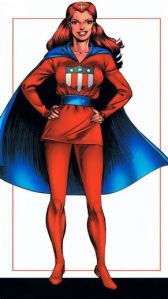 MARVEL’S 1940s SUPERHEROINE MISS AMERICA – Madelyne Joyce was secretly Miss America, a flying, super-strong woman with vision that could penetrate walls. During the 1970s, Marvel retconned her as the mother of the Scarlet Witch and Quicksilver, but that was later retconned itself. Click HERE.