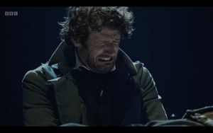 MARLEY’S GHOST – Mark Gatiss really shines in the scene where he gets to go full frontal ghostly. Like most of the cast, he understands the play and the Victorian dialogue and wonderfully brings to life Dickens’ own words. Presumably because of Gatiss’ stature he also shows up as Jacob Marley in parts of the Christmas Past and Christmas Yet to Come portions which are Marley-free in the book.