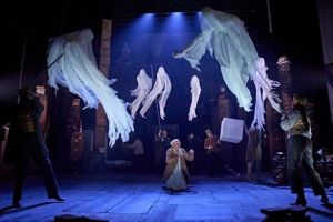 THE WANDERING SPIRITS – Human-sized puppets on rods are manipulated to portray the cursed, wandering spirits that show up as Marley’s Ghost departs. One of my few disappointments with this Carol is its failure to make it clear that they are the spirits of other greedy, covetous misers who share Marley’s fate. Viewers who aren’t well-versed in the story may not know what they are supposed to be since Jacob doesn’t provide his usual explanation for them.