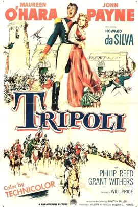TRIPOLI (1950) – Throw away historical accuracy and pick up a sword and pistol for this wild embellishment of a crucial point in the First Barbary War. The tale is set in April and May of 1805 with John Payne starring as the real-life U.S. Marine Corps Lieutenant Pressley O’Bannon and Maureen O’Hara as the fictional Countess Sheila D’Arneau.
