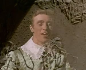 At long last, the Ghost of the title returns, making his first appearance since the opening credits. This time he’s played in live action by Lorne Gibson of the Lorne Gibson Trio. He’s depicted as translucent to emphasize his ghostliness but rather than walk through the wine cellar wall he has to open a secret passageway in order to enter.