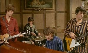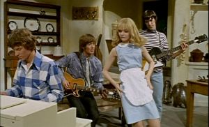 I mentioned above that this film came out the same month and year as The Monkees tv series, but the scene in the wine cellar is rendered like the director saw several Monkees episodes but didn’t understand English. The band members act self-consciously zany and make funny faces but there are no laughs to be had. “Cringe” doesn’t begin to cover it.