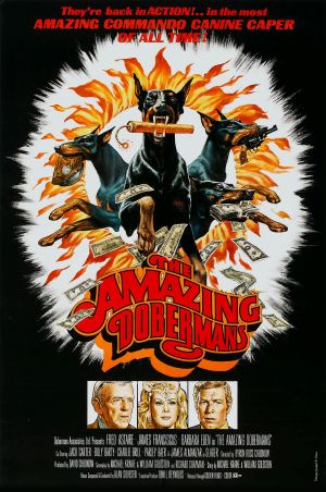 THE AMAZING DOBERMANS (1976) – Okay, now THIS is what the Doberman series should have been all along! The Amazing Dobermans is an outright comedy that stars Fred Astaire, Barbara Eden, James Franciscus, Jack Carter and Billy Barty.