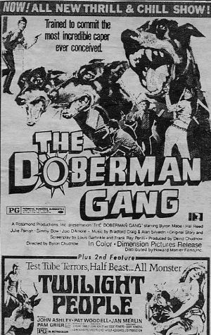 Other cast members were ROBERT DAVI and Charles Knox Robinson from the 1973 film The Daring Dobermans.
