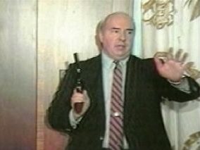 On the 22nd, Dwyer held a press conference at which he protested the guilty verdict, produced a .357 Magnum handgun from a large envelope he was holding and shot himself to death. The tragic event was broadcast live and since many schools were out on a snow day on that date countless school children happened to be watching. WARNING: ADULTS ONLY MATERIAL BELOW.