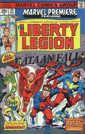 The Patriot, Miss America, Whizzer, Jack Frost, the Thin Man, Red Raven and Blue Diamond answer Bucky’s call and become the Liberty Legion.