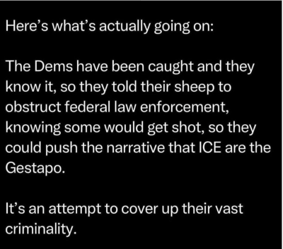 The people who support illegal immigration were anti-ICE and anti-Trump BEFORE any incidences ever occurred. They continue to promote the narrative that Renee Good was just innocently driving her car at an ICE Agent and Alex Pretti had a legal right to bring a concealed weapon to a protest. These people are ignorant fools, in my opinion.