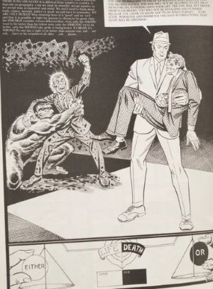 The leader of the group cruelly plans to sexually assault Lilly and kill her after the ransom is paid. (This was an independent comic book, so such topics could be dealt with.) Naturally, Mr. A arrives in time to save the poor kid and he’s wielding a handgun for the first time.