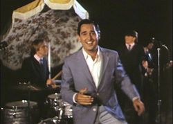 Cut to a teen party at the same poolside that night. Betty and a few dozen friends are frolicking at a co-ed get-together while J.B. and the Playboys perform their song Leave My Woman Alone. Next, Bob/ Neil Sedaka sings his dance hit Waterbug while looking like Liberace and dressed like a singing insurance salesman or something.