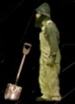 Baruba the Monk, Baron Boogaloff, the Glob (Deming’s face in the moon), Voice of Doom, Ivan Awfulitch, and Tilly Trollhouse the Singing Maid were all brought to life by the talented Mr. Deming – in Tilly’s case while in drag. Lawson also played Reel McCoy (below left), the gravedigger who dug up each movie to be shown by Sir Graves.
