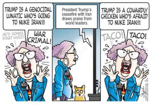 CBS/ YOUGOV POLL: SEVENTY-SIX PERCENT AGREE WITH STOPPING IRAN’S NUCLEAR WEAPONS CAPABILITY. When Iran’s regime was slaughtering protesters, Trump-haters bashed him for not acting. Trump acted, so now Trump-haters side with Iran’s regime.