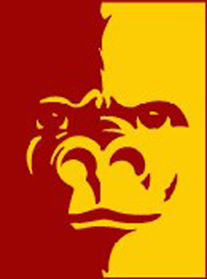 Comment: Yes, it’s Pittsburg without the “h” at the end and it’s in Kansas, not Pennsylvania. And their quarterback isn’t currently serving a 4-game suspension either! That friendly fellow up there is Gus the gorilla and that image adorns the middle of the football field in the Gorillas’ home stadium, called The Jungle in the tradition of The Swamp and The Big House.