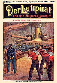 CAPTAIN MORS IMPRISONED – Far above the ocean, Kapitan Mors commands his Luftschiff (Air Ship) on its latest voyage along with its part European and part Indian crew. A carrier pigeon brings our masked hero a distress call from Miss Else Martens. She is in the clutches of a tinpot dictator who wants to force her into a marriage.