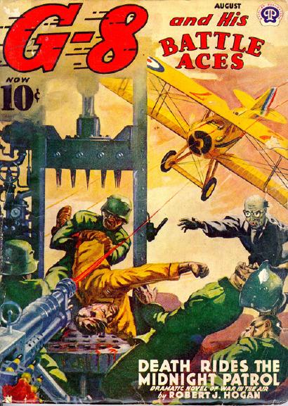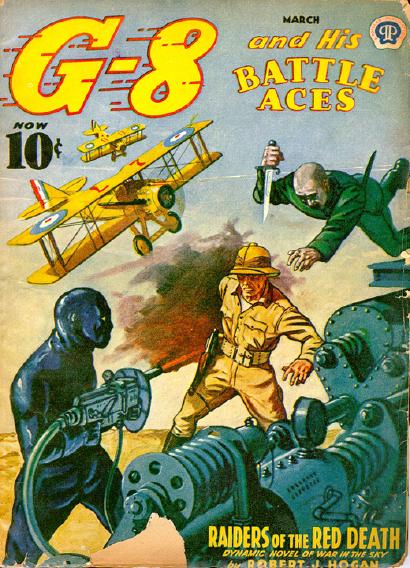 G-8 was created by Robert J Hogan in 1933 when World War One was still being called simply the World War or the Great War. Over the next eleven years Hogan wrote 110 stories featuring the adventures of G-8, the street-smart pug Nippy Weston and the brawny giant Bull Martin. Our hero – whose real name was never revealed – served as an aerial commando and spy as well as a sort of Indiana Jones/ Brisco County Junior figure against his archenemy Doktor Krueger and a host of other mad scientists, aliens and monsters that the Central Powers had up their sleeve.