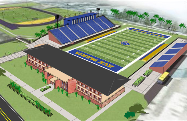 If you can spot the faces of all 16 previous Chief Justices Of The Supreme Court in this provisional artists’ rendering of the AMU football field you can win $7.00! For details click here:  http://www.amuathletics.com/football/news/33/417/