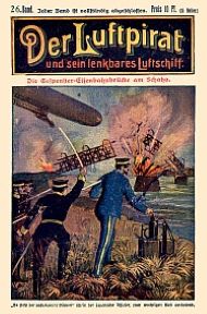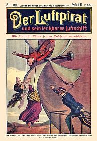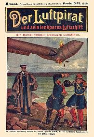 A BATTLE BETWEEN AIRSHIPS – Word reaches our Air Pirate Kapitan Mors about French efforts to duplicate his Luftschiff in anticipation of the global conflict that many fear is inevitable. Still considering himself outside international law, Mors determines to nip in the bud any challenge to his aircraft.